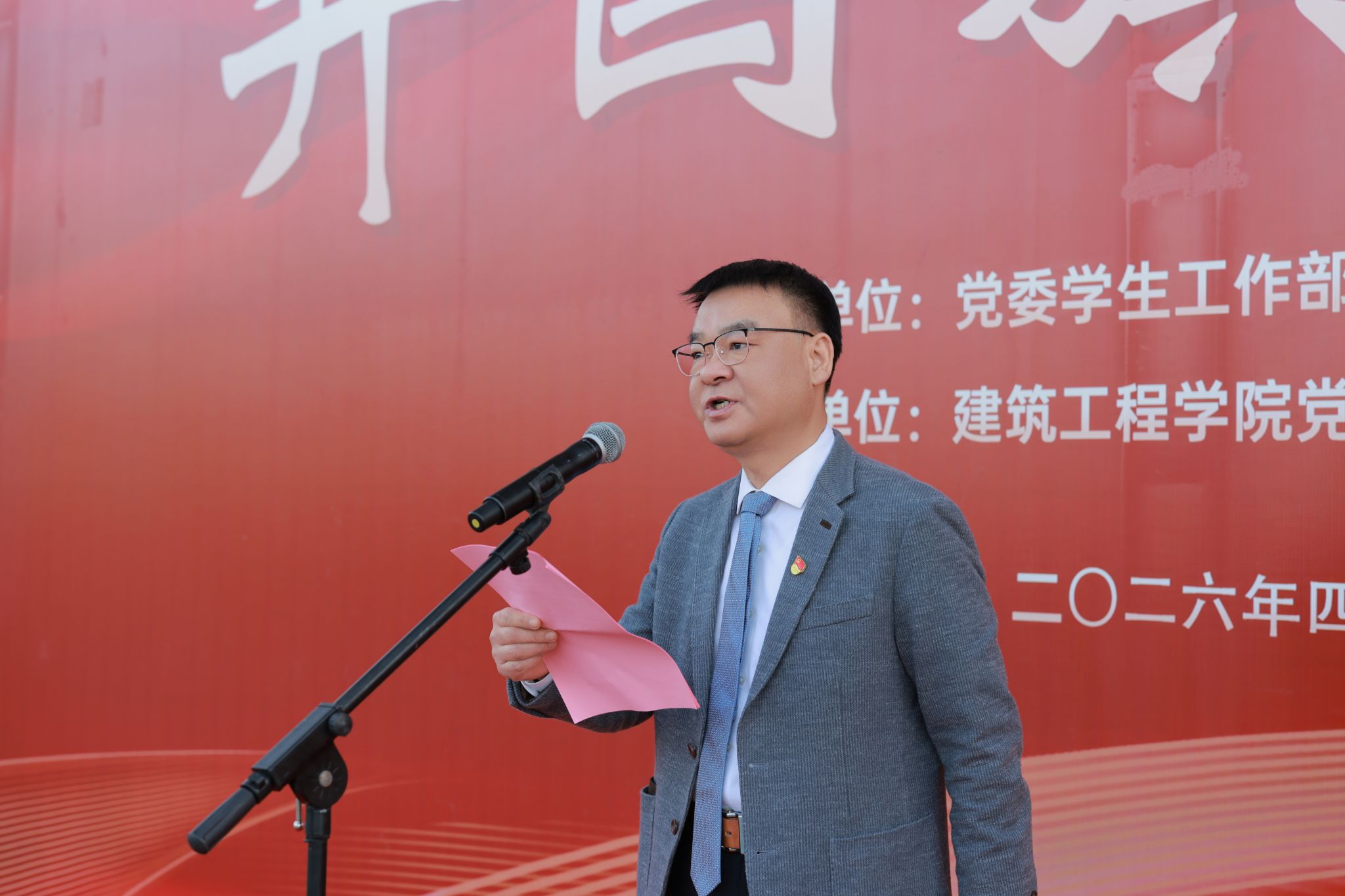 水果派 院长刘志峰教授发表题为《让青春在国旗下绽放:做堪当大任的建工人》的讲话。他围绕“胸怀家国、洞察趋势、砥砺品格”三个方面提出殷切期望:一是要胸怀家国,在时代浪潮中锚定青春坐标,以杰出校友为榜样,将专业报国情怀镌刻在祖国大地上;二是要洞察行业变革趋势,勇立新质生产力发展潮头,主动拥抱变革,锤炼系统思维与创新能力;三是要砥砺品格,坚定理想信念,练就过硬本领,勇于创新创造,在笃行实干中成长为堪当民族复兴重任的时代新人。他最后寄语全院学生:以青春之我、奋斗之我,在绿色智能建筑的宏伟蓝图里、在广袤城乡建设的土地上,奋力书写无愧于时代、无愧于国家的建工华章。